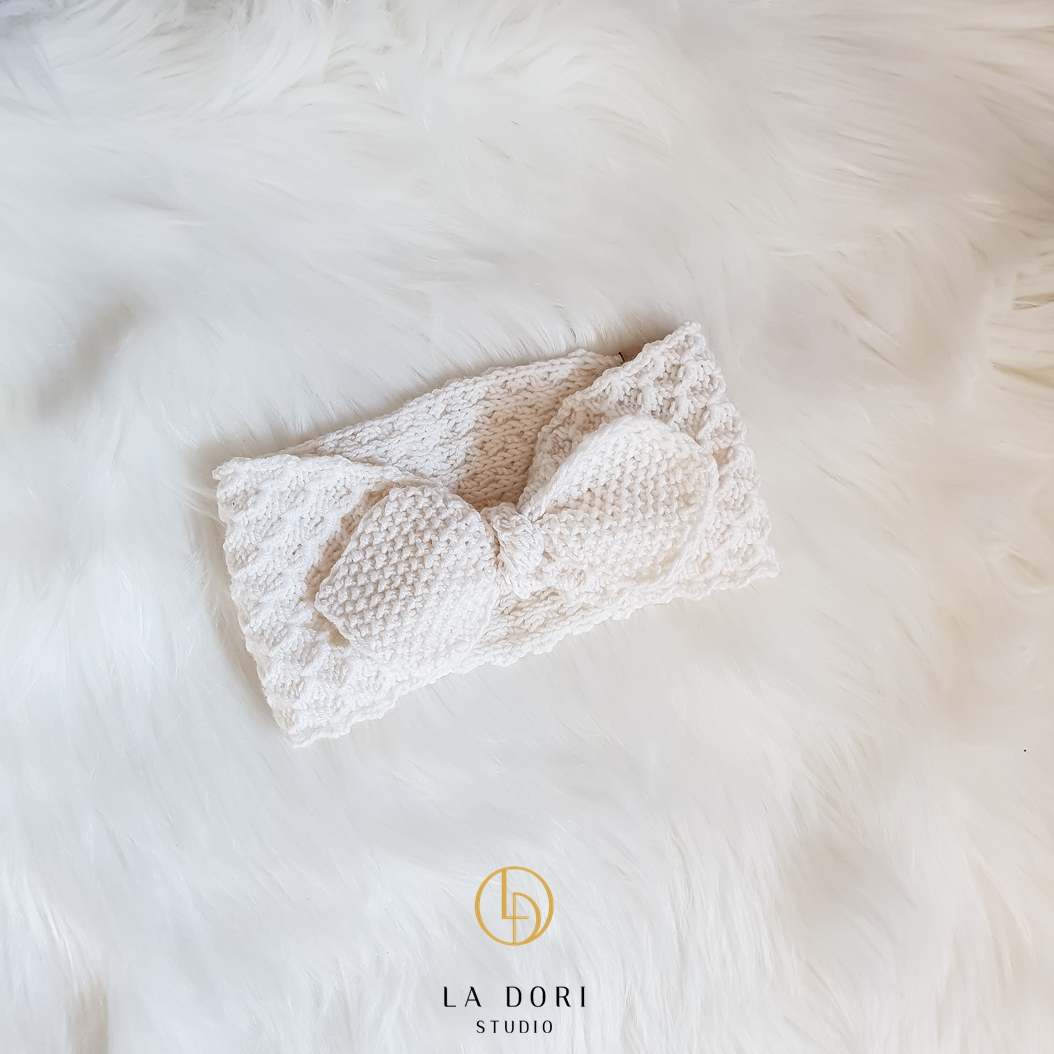 Fantastyczna opaska z wiązaniem w stylu pin up, zrobiona ręcznie na drutach z kaszmirowo miękkiej wełny merino.