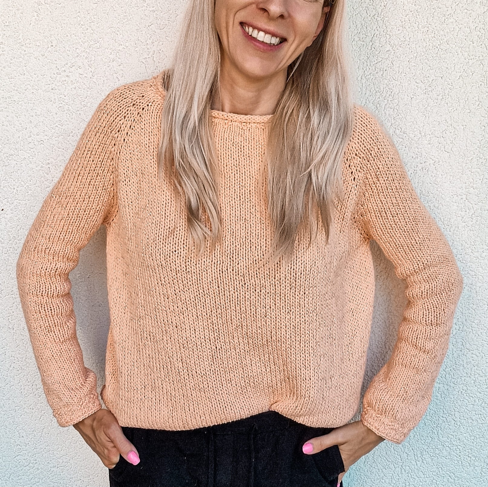 Sweter robiony ręcznie na drutach techniką bezszwową,
